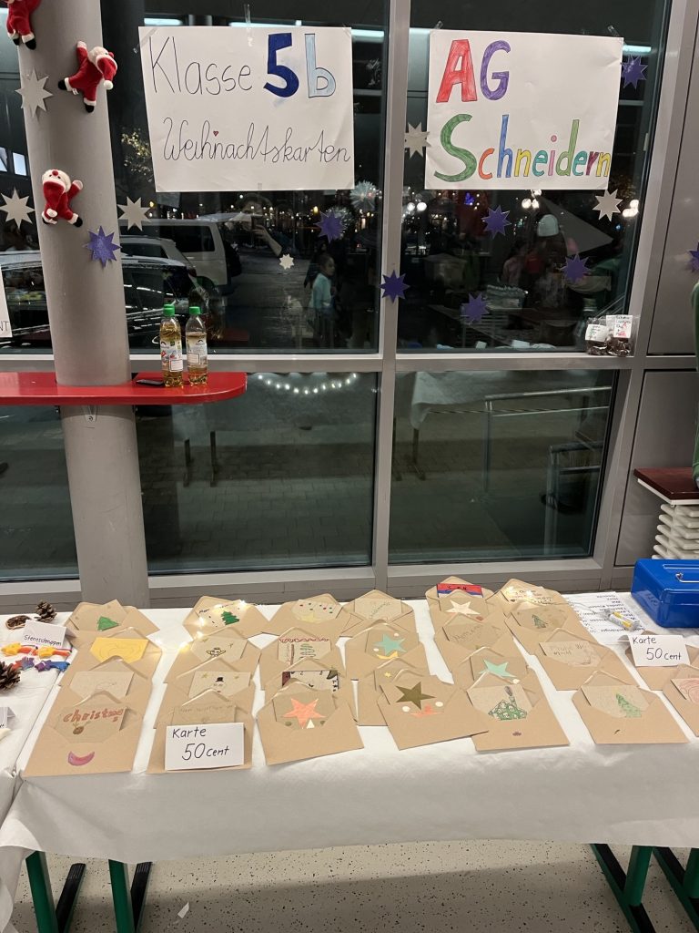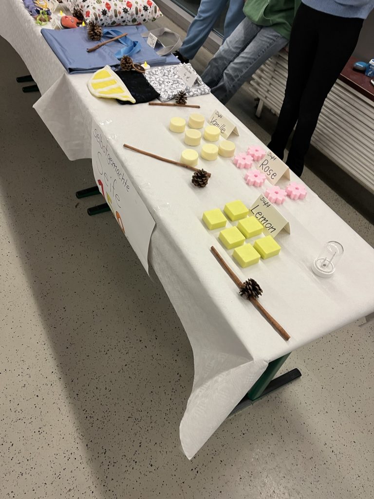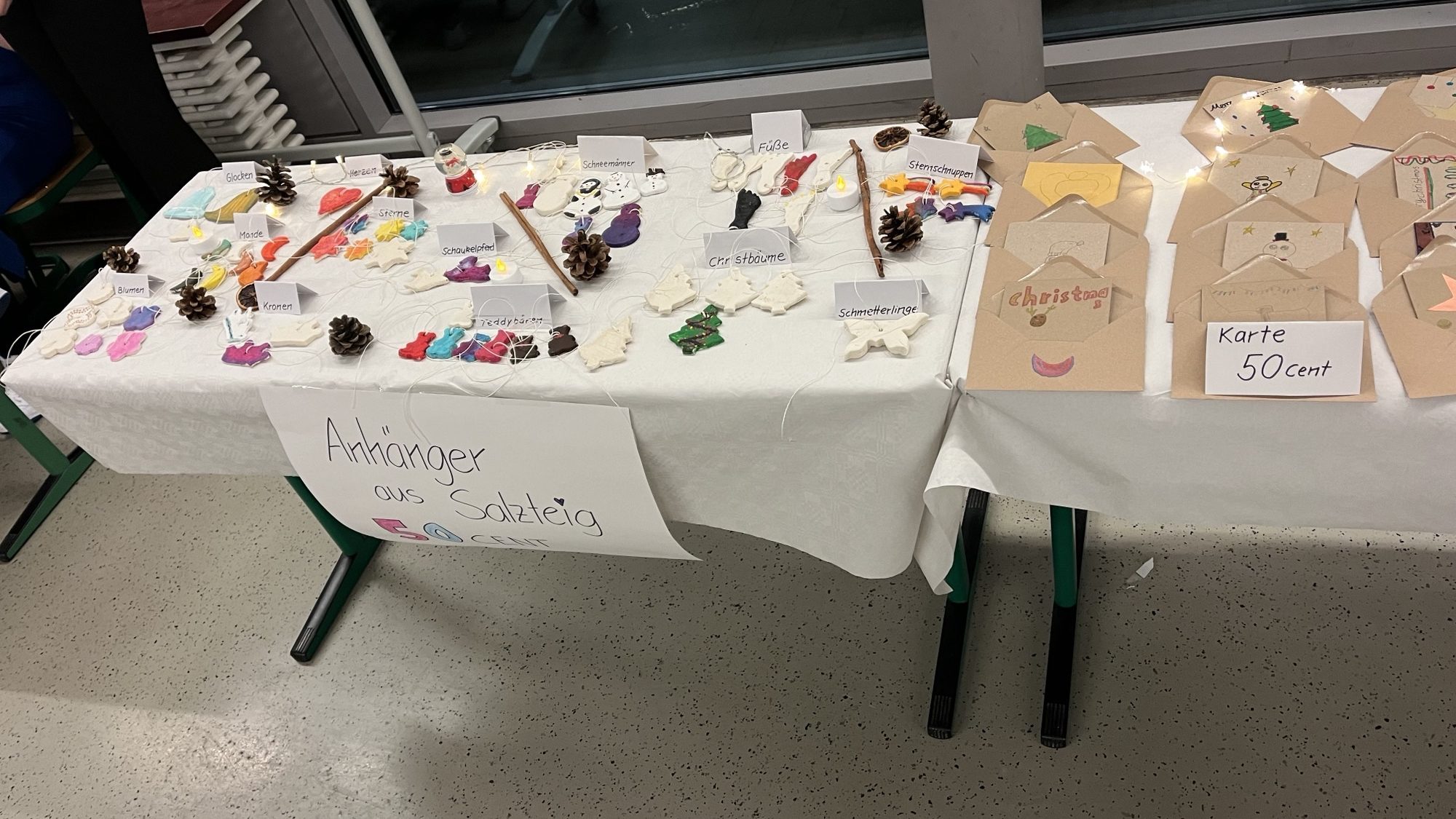 Mit dem Adventsbasar am Elternsprechtag startete die Mittelschule Insel Schütt gemeinsam mit der Grundschule in die Adventszeit. Die Grundschule verkaufte vor allem Bücher, die Elternbeiräte der Grund- und Mittelschule versorgten Groß und Klein mit Getränken, Punsch, Kuchen und gegrillten Würstchen. Bei den Ständen der Mittelschule gab es vom Suppenverkauf und fairen Schokocrossies, über selbstgemachte Seifen, Salzteiganhänger und Genähtem auch gebastelte Weihnachtskarten der Klasse 5b. Es war für jeden etwas dabei und eine tolle Veranstaltung.