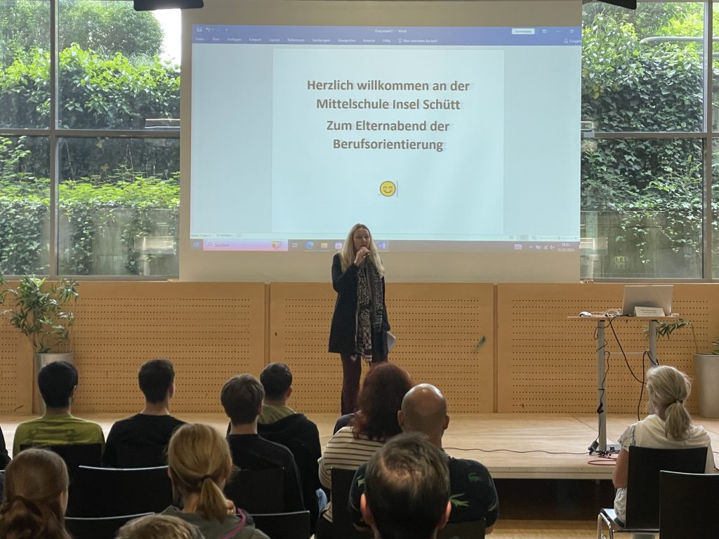 Unter Moderation von Schulleiterin Frau Gutowski konnten die Eltern unserer Lernenden die wichtigsten Beraterinnen im Bereich Berufsorientierung kennenlernen. So stellten sich Beratungslehrerin Frau Koch-Reinisch, Frau Eckert-Mell von der Berufsberatung, Frau Regelein und Frau Eisenbarth von SCHLAU, Frau Gräfe von BerEB und Frau Röck von der Berufsschule vor.